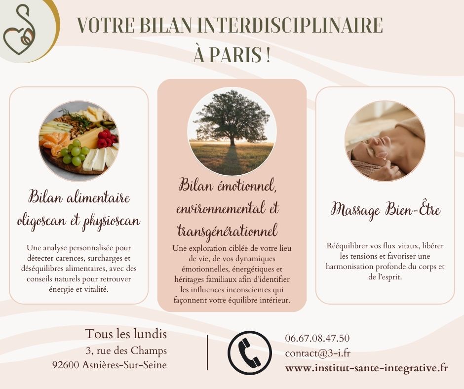 Que vous souhaitiez améliorer votre hygiène de vie (alimentation, mouvement, détox), rééquilibrer vos énergies, trouver une écoute attentive et un soutien bienveillant, ou corriger votre posture, notre institut vous propose un accompagnement global et simultané.
